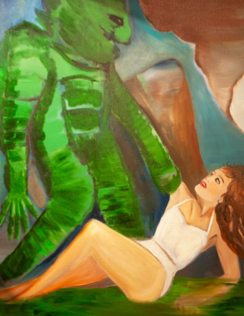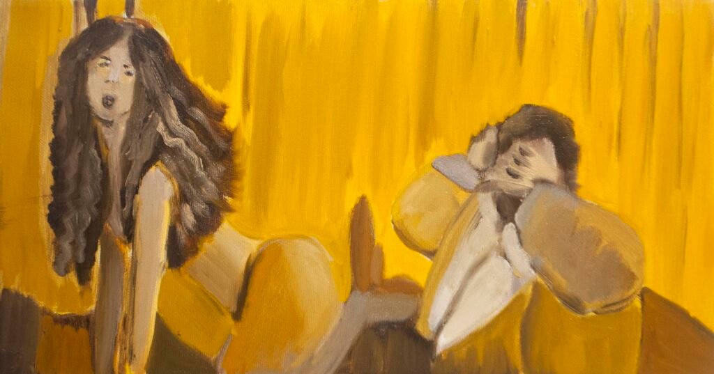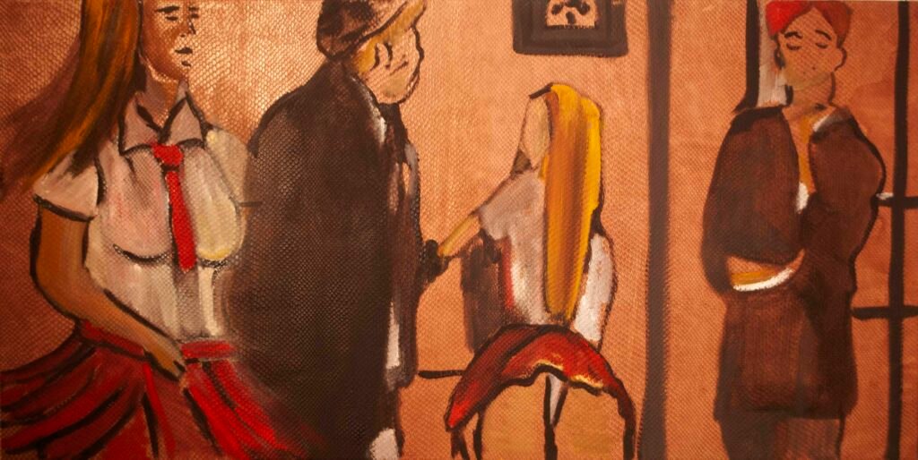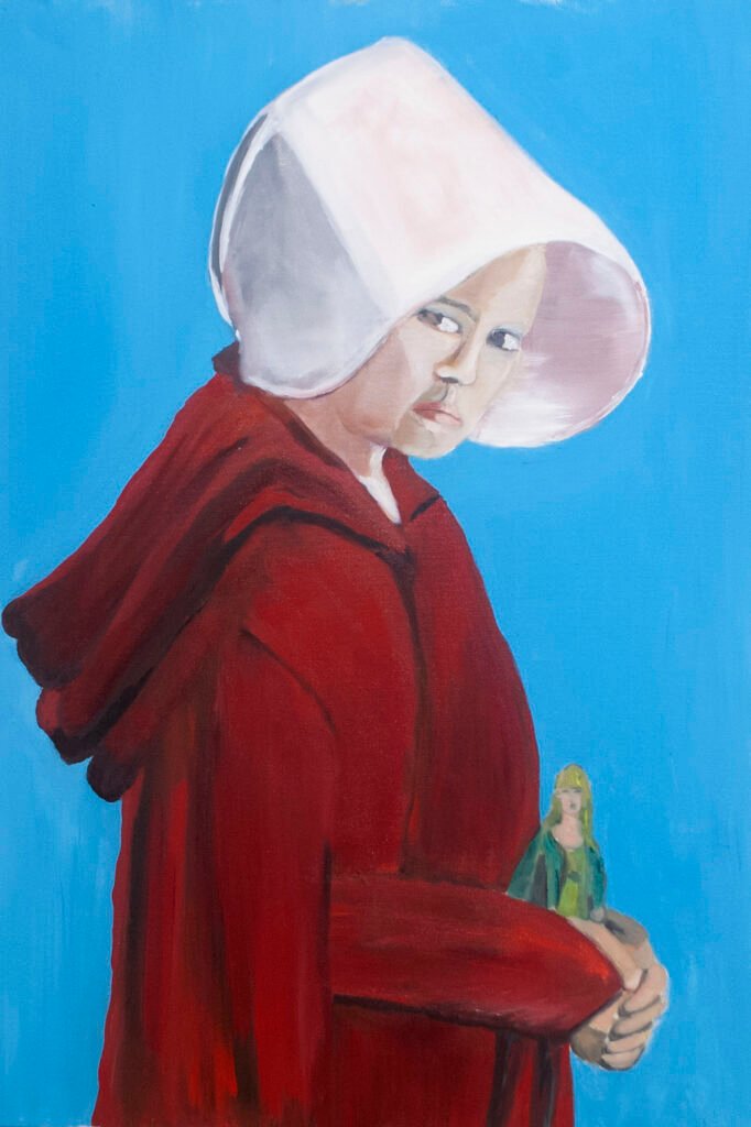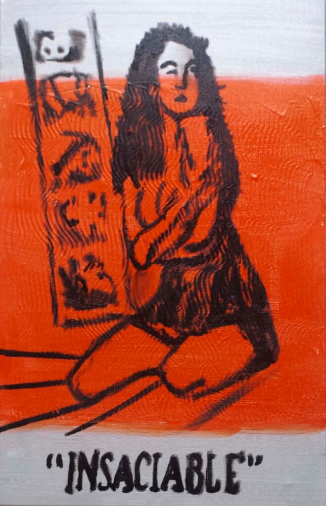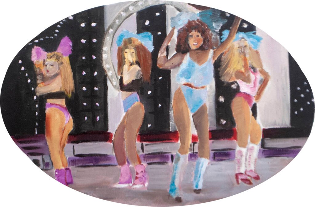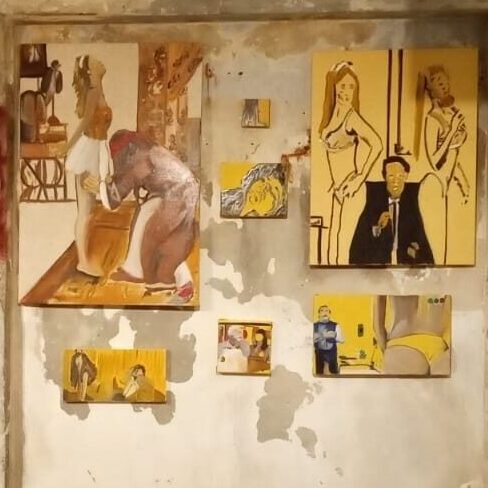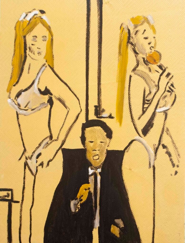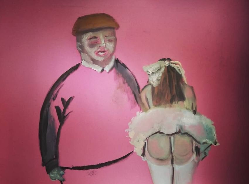 The exhibit consists of 80 paintings depicting scenes from films, TV series, and advertising, spanning from the 1950s to the present day. These images illustrate the use of the female body as a form of propaganda; the media utilizes women as a tool to establish a patriarchal culture. This culture aims to preserve the male’s position in society as dominant and strong, while defining woman’s place as passive and weak.