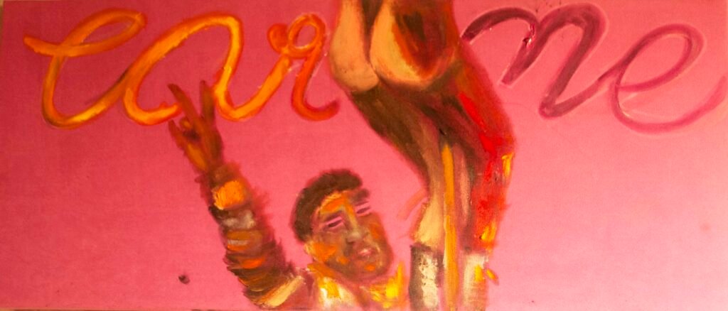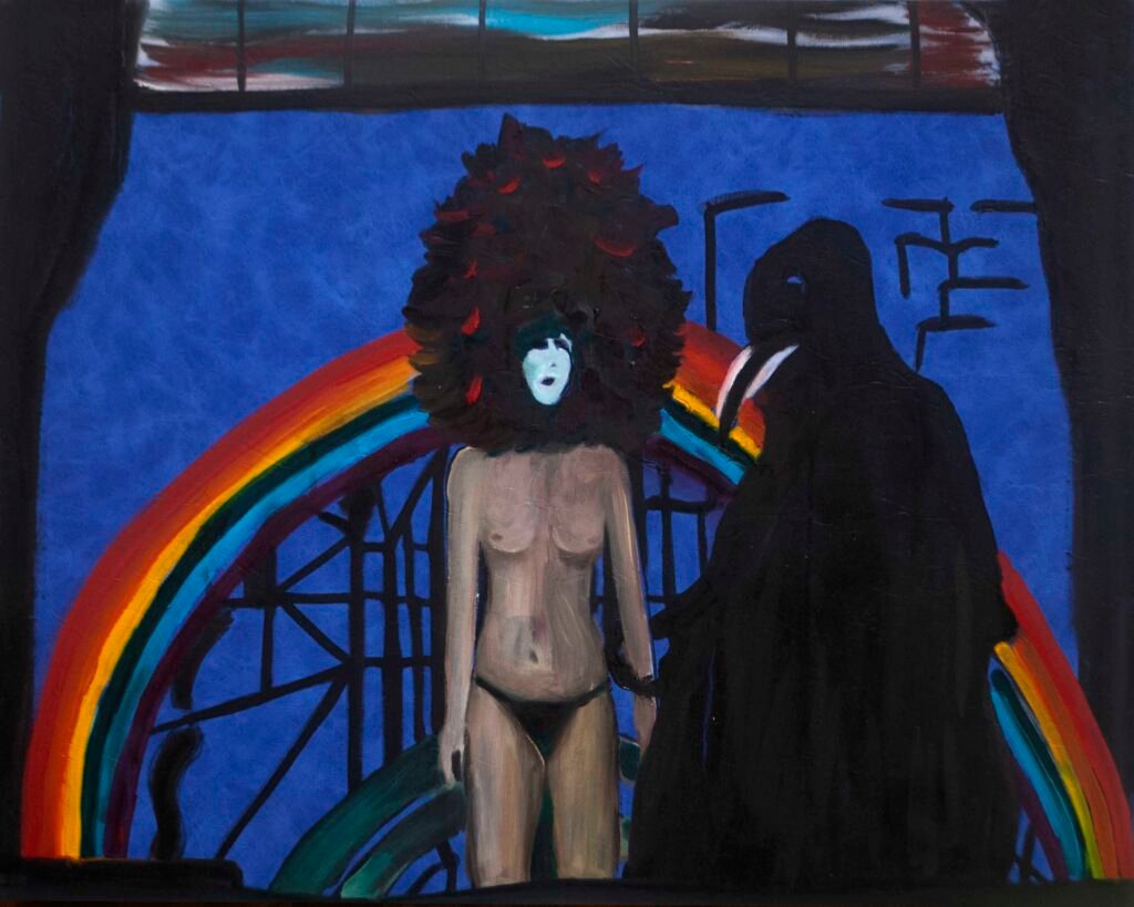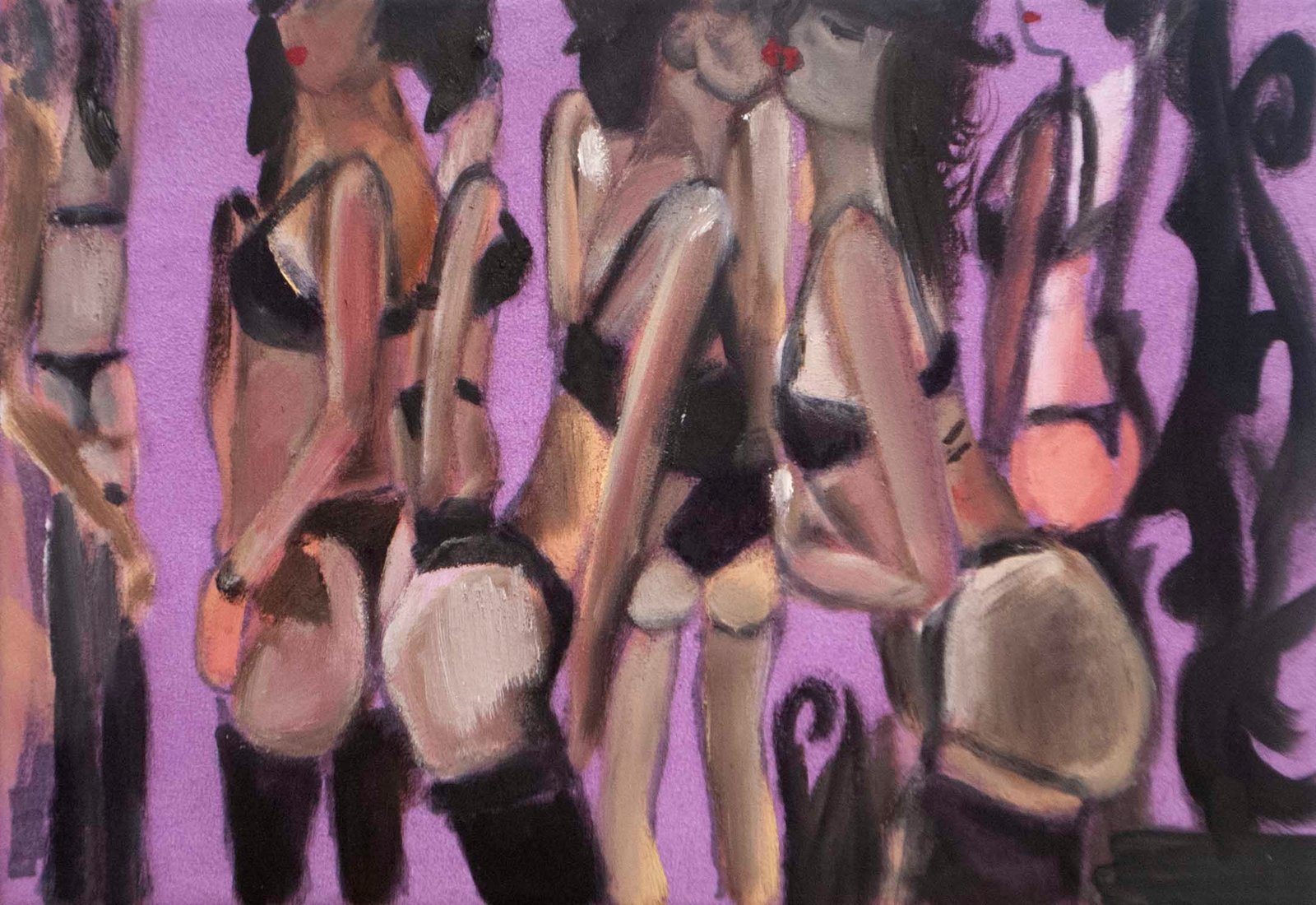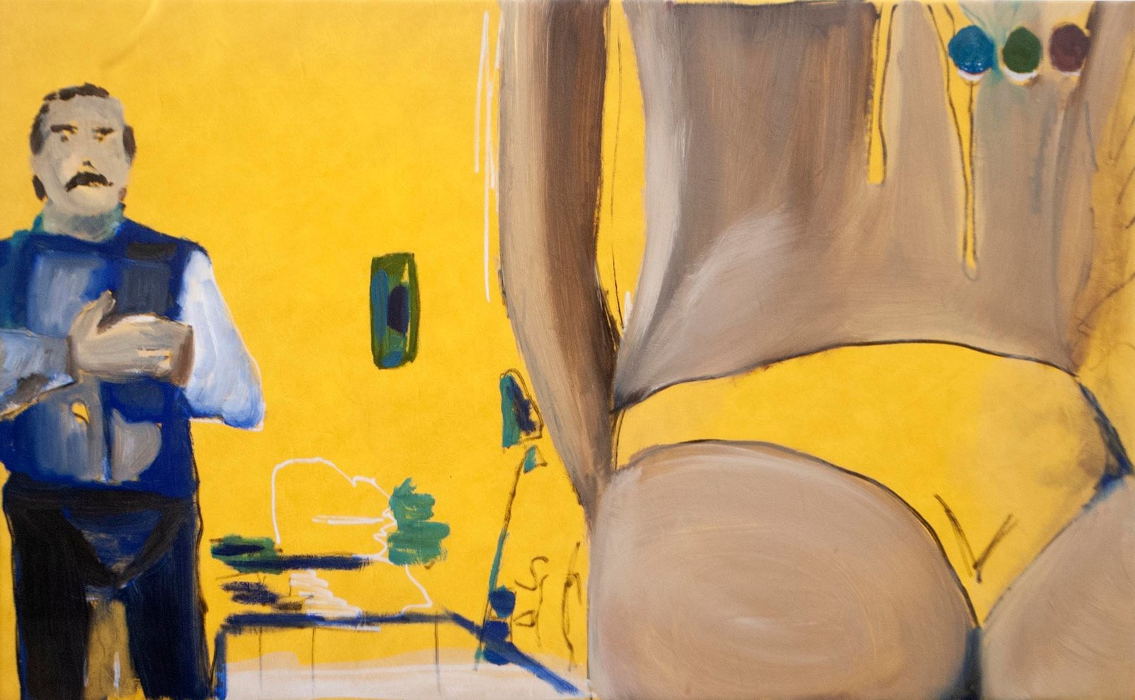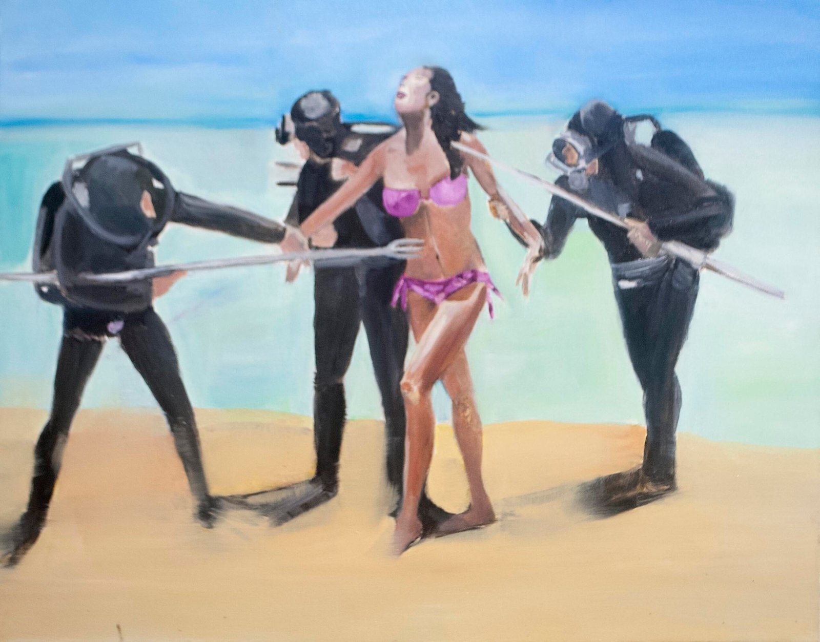The exhibit consists of 80 paintings depicting scenes from films, TV series, and advertising, spanning from the 1950s to the present day. These images illustrate the use of the female body as a form of propaganda; the media utilizes women as a tool to establish a patriarchal culture. This culture aims to preserve the male’s position in society as dominant and strong, while defining woman’s place as passive and weak.