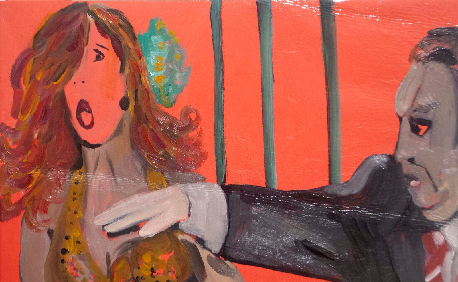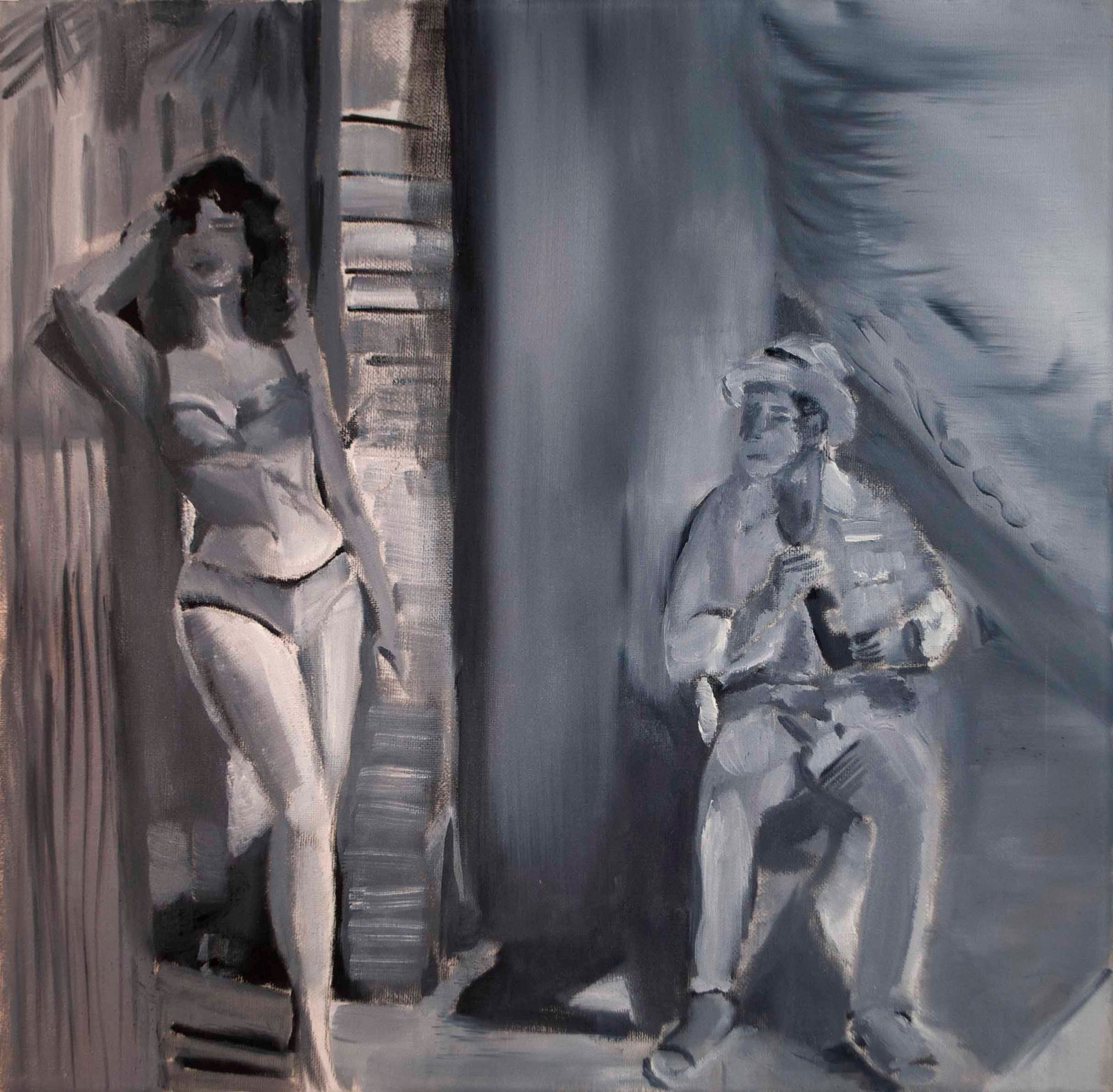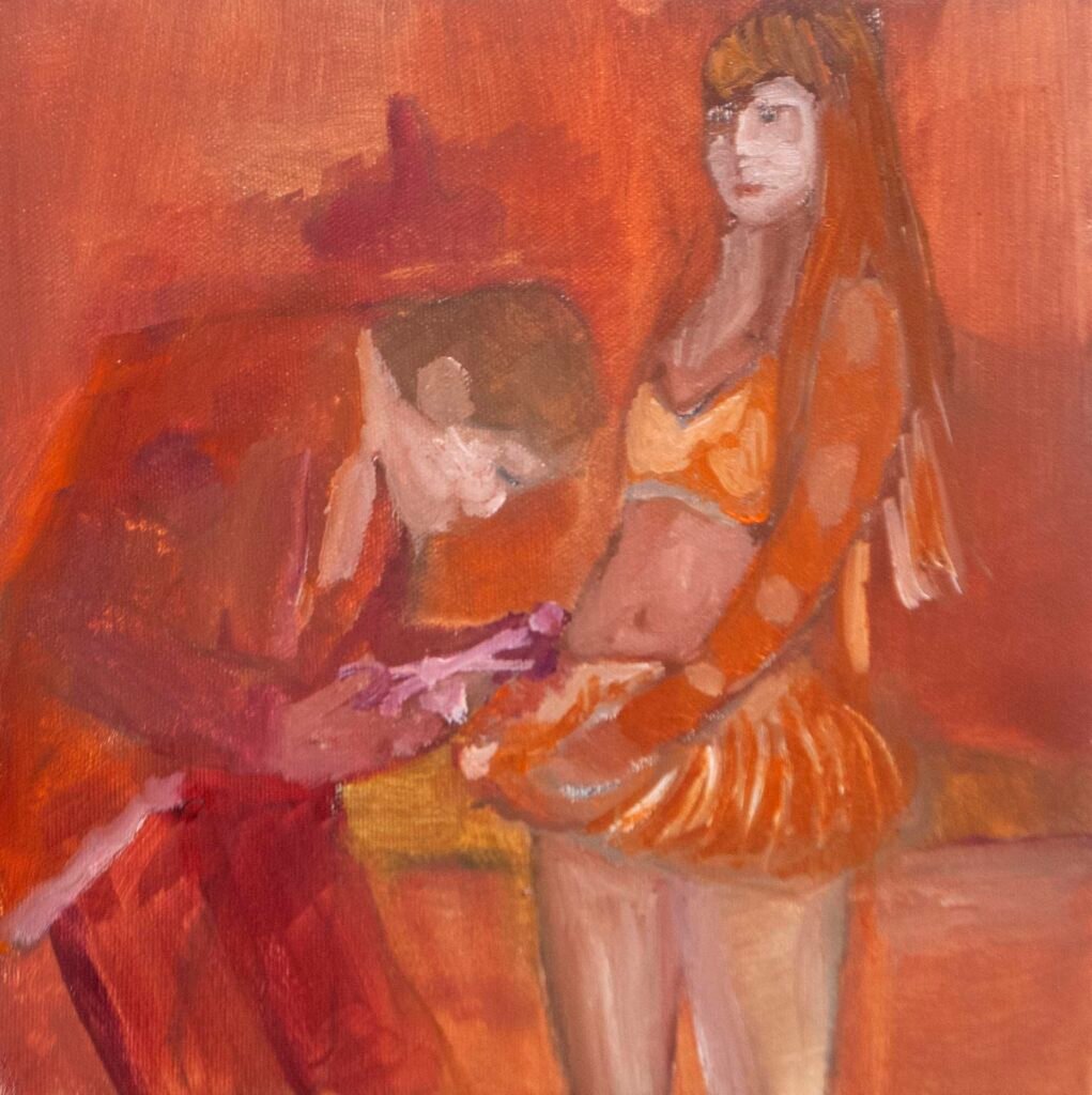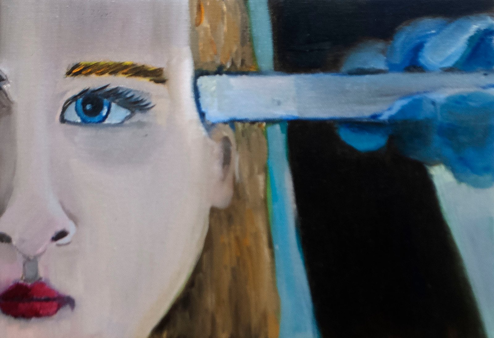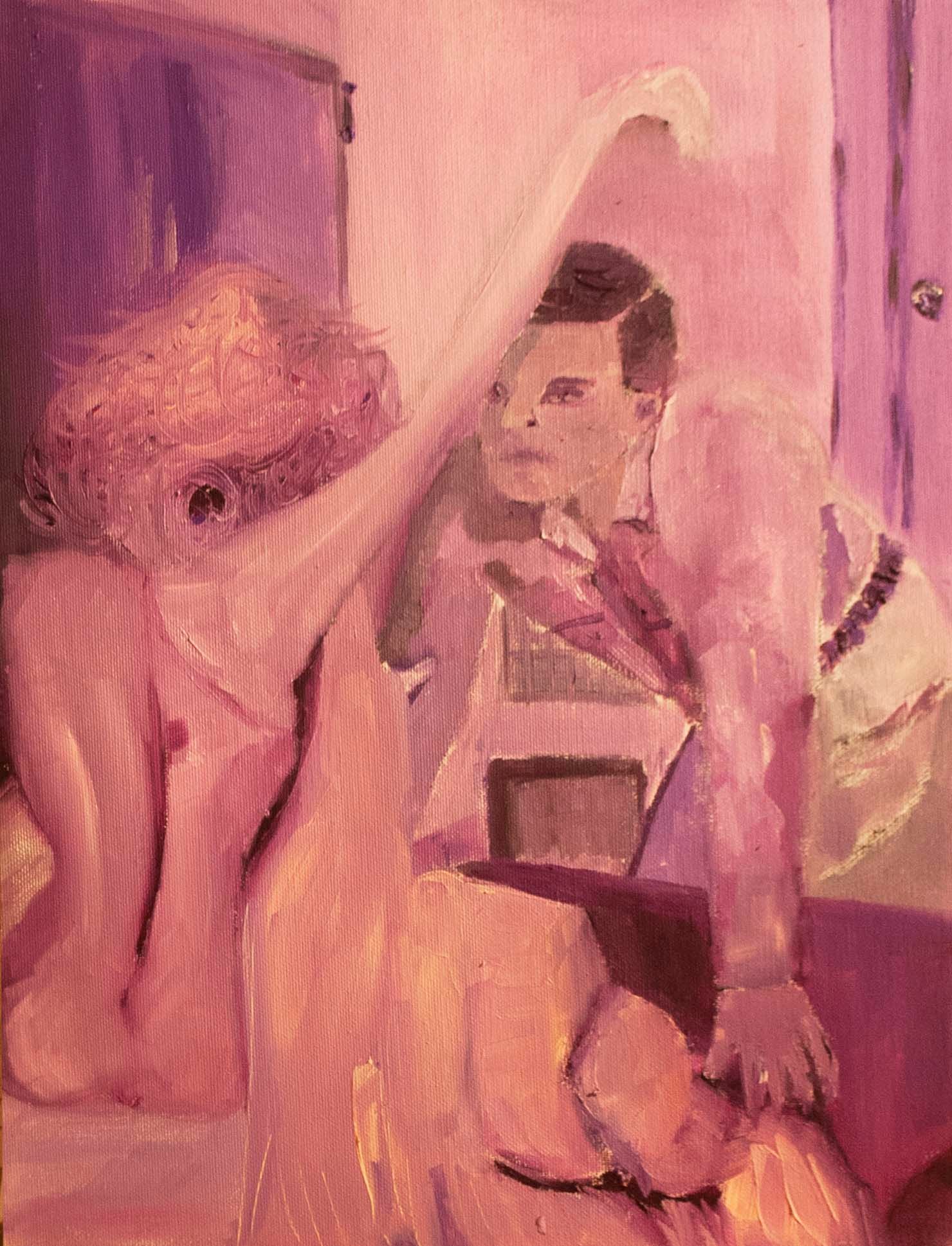 The exhibit consists of 80 paintings depicting scenes from films, TV series, and advertising, spanning from the 1950s to the present day. These images illustrate the use of the female body as a form of propaganda; the media utilizes women as a tool to establish a patriarchal culture. This culture aims to preserve the male’s position in society as dominant and strong, while defining woman’s place as passive and weak.