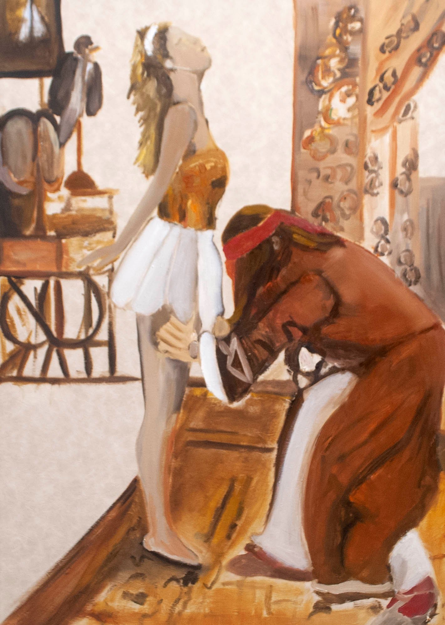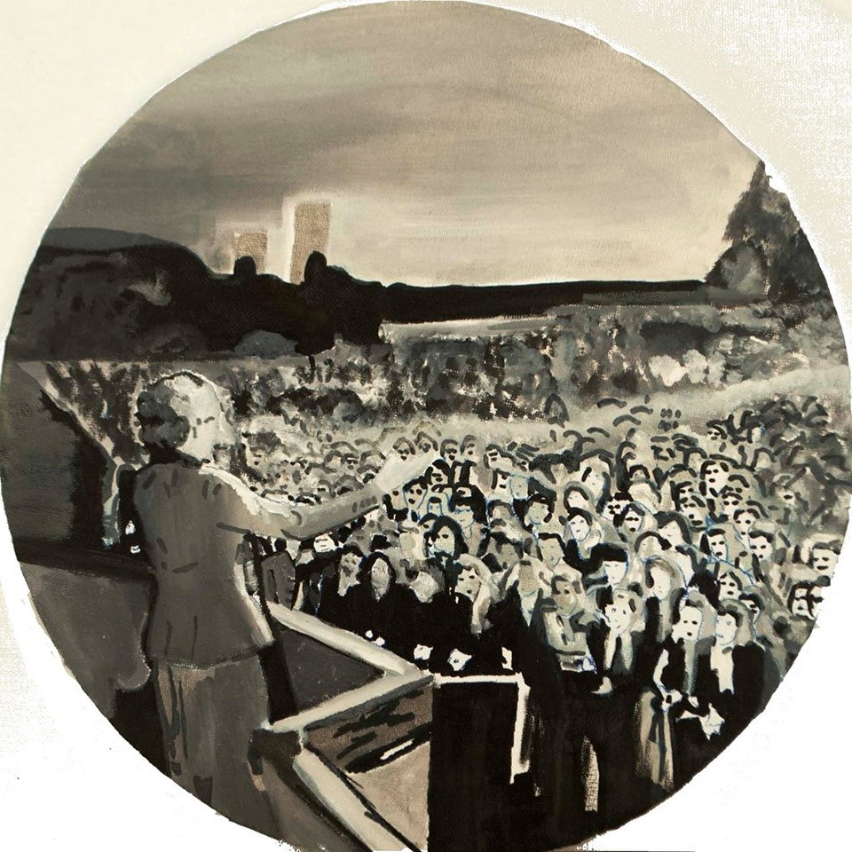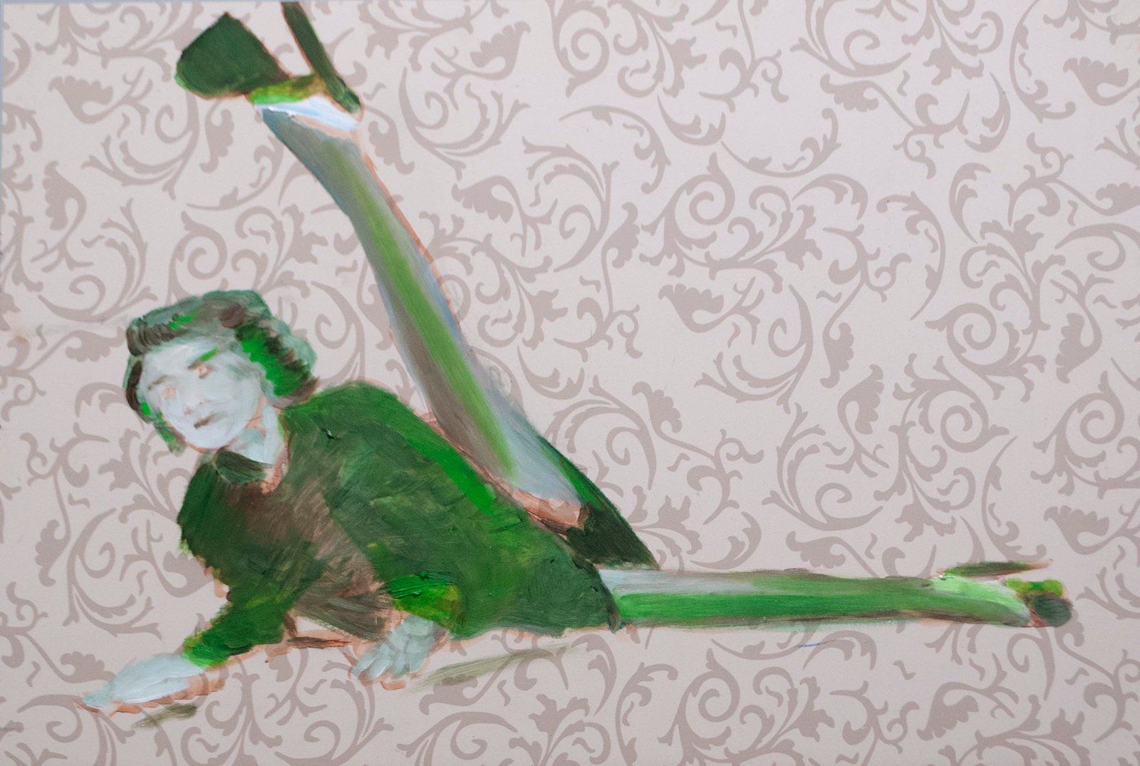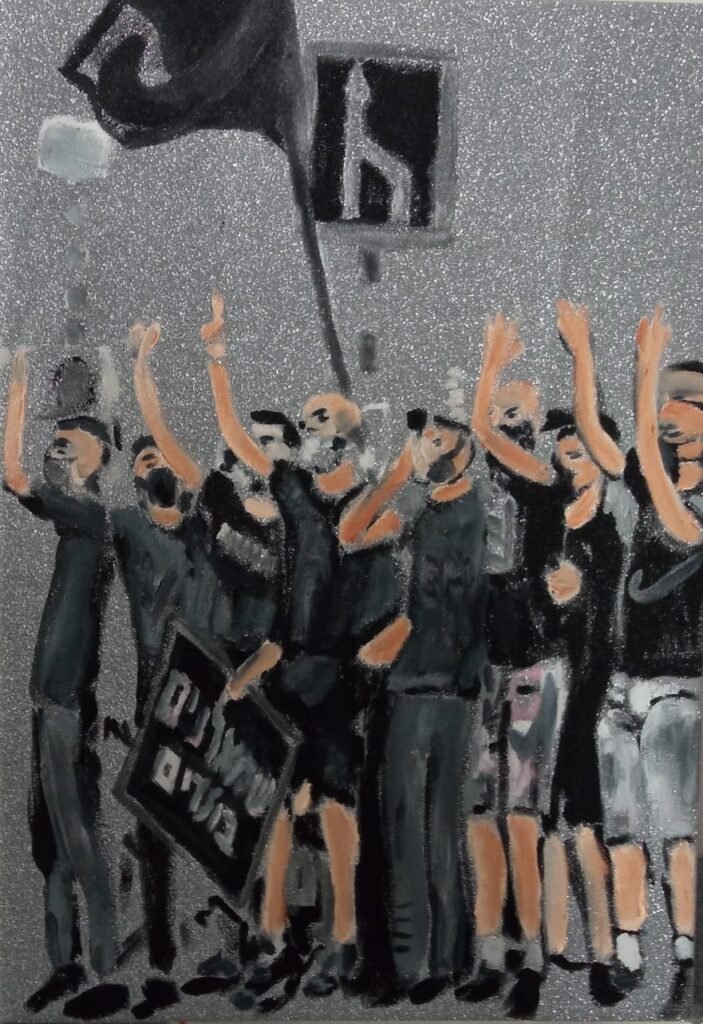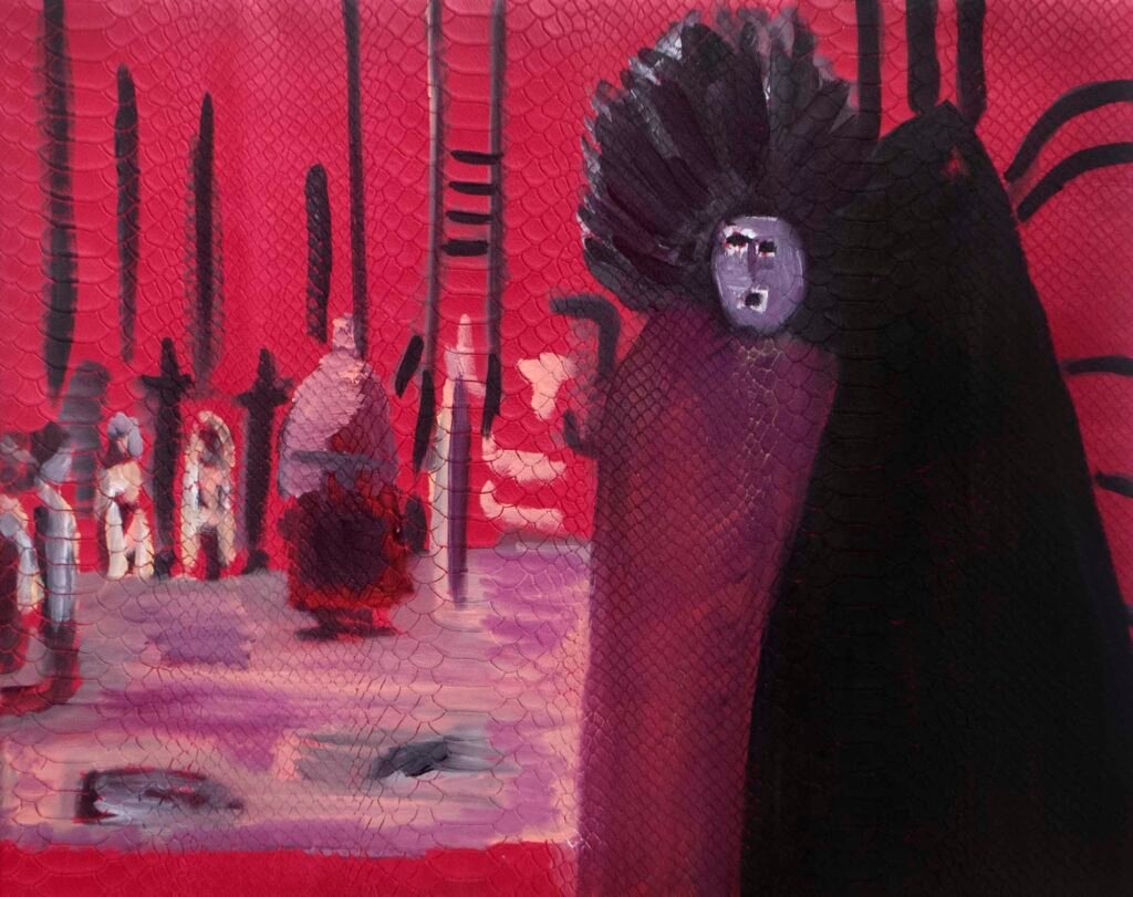 The exhibit consists of 80 paintings depicting scenes from films, TV series, and advertising, spanning from the 1950s to the present day. These images illustrate the use of the female body as a form of propaganda; the media utilizes women as a tool to establish a patriarchal culture. This culture aims to preserve the male’s position in society as dominant and strong, while defining woman’s place as passive and weak.